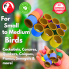 Perfectly sized for extra small to medium bird breeds, such as Parakeets, Lovebirds, Cockatiels, Conures, Caiques, Senegals, and Pionus. Each ring is lightweight (under 0.1 oz) and easy to grip and destroy—great for beaks that love to chew!