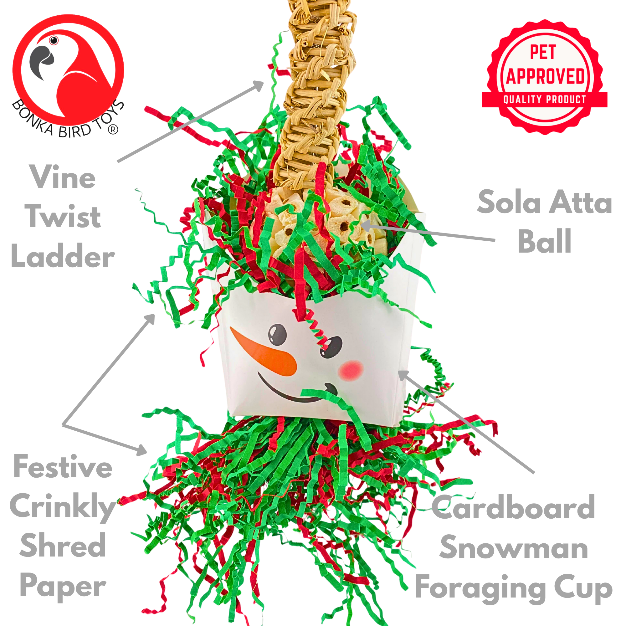 π Bring Festive Fun to Your Feathered Friends with Christmas-Themed Bird Toys. π Discover a Wide Variety of Engaging Toys to Keep Your Birds Entertained. βοΈ Explore Specially Designed Toys with Holiday Colors, Shapes, and Textures. π Create a Merry and Stimulating Environment for Your Feathered Companions. βοΈ Make the Holidays Extra Special with Bonka Bird Toys' Christmas Collection.