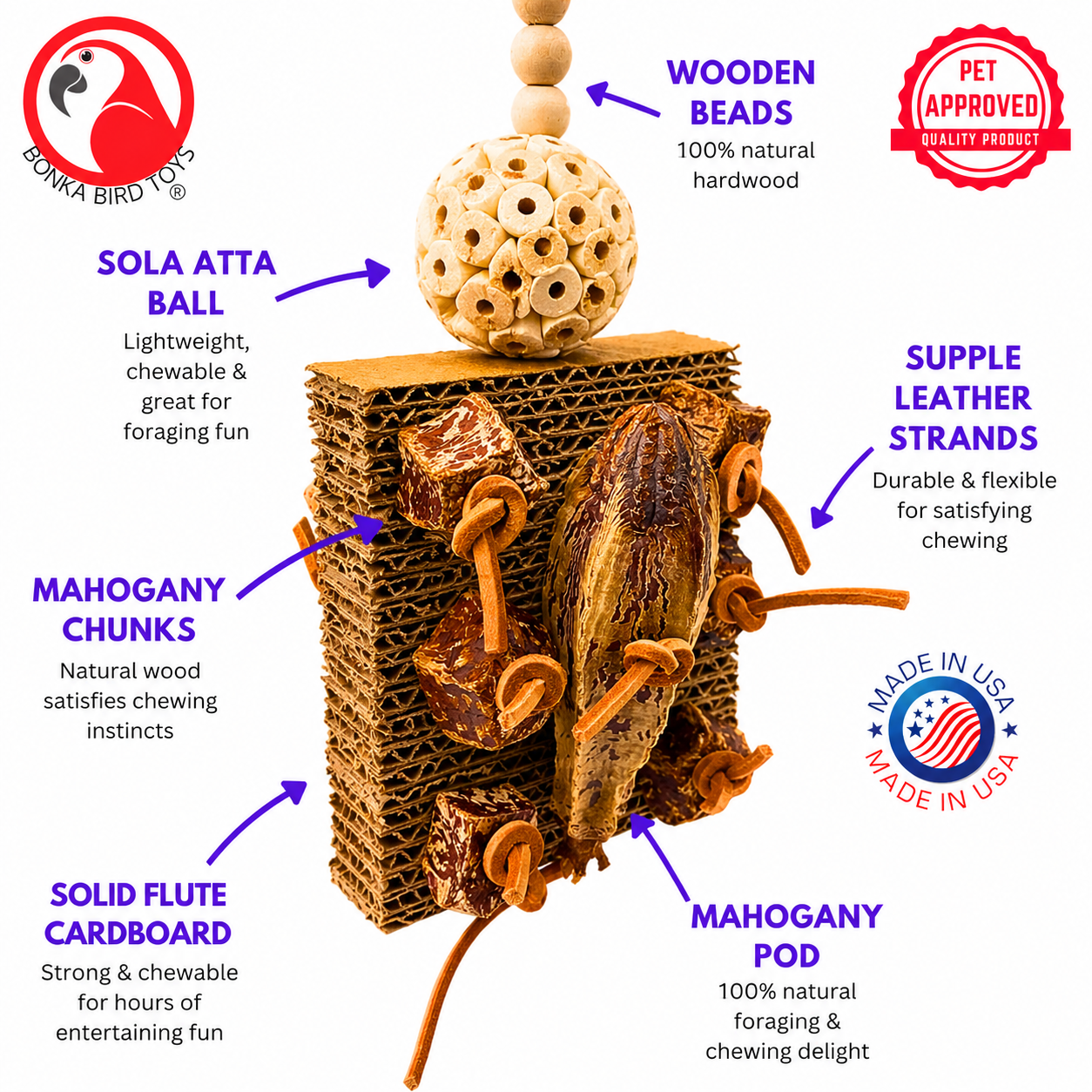 The Bonka 1427 Mahogany Forage Block is a must-have chewable bird toy for keeping feathered friends busy, happy, and entertained.