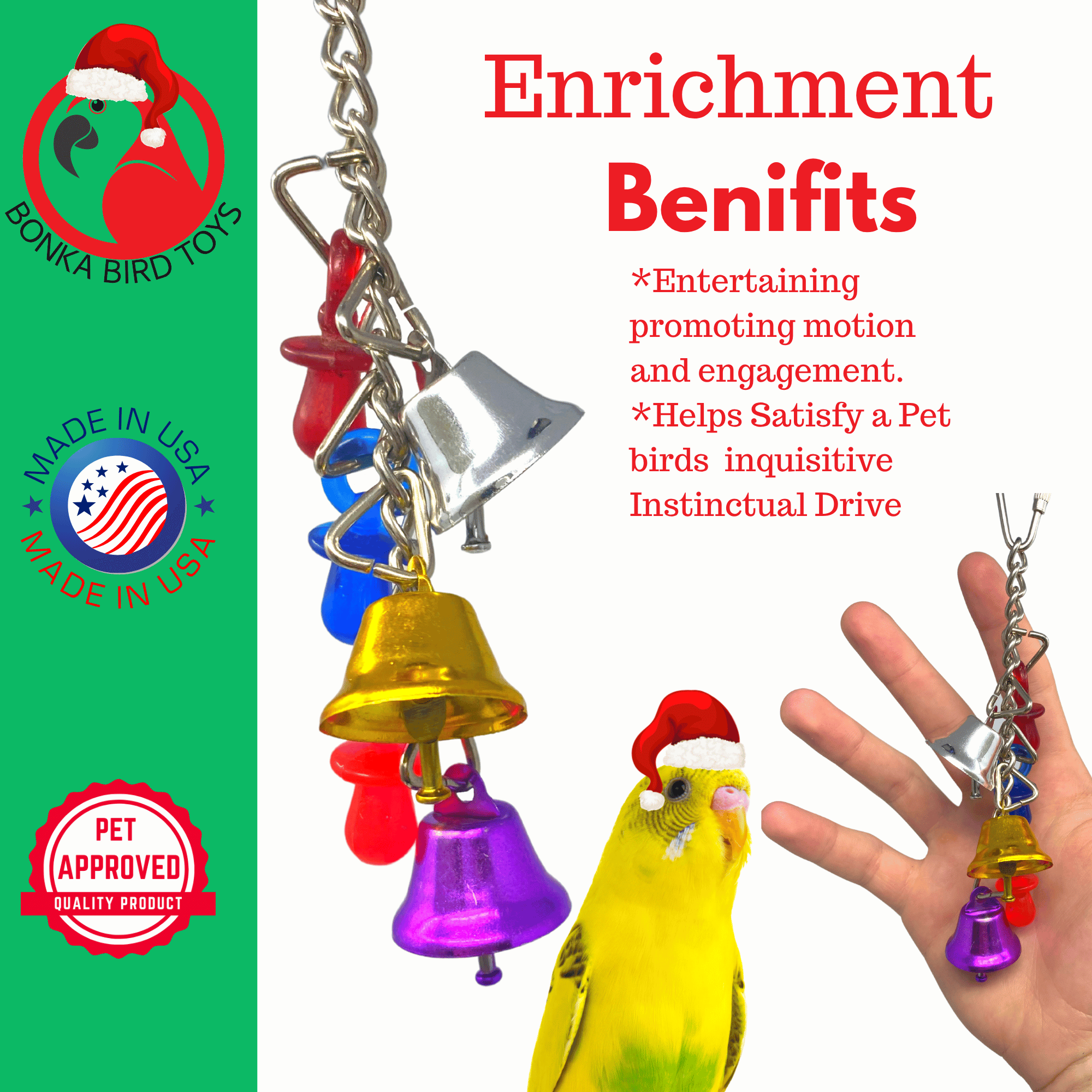 - Auditory Stimulation: Bells, chimes, and rattles captivate birds.
