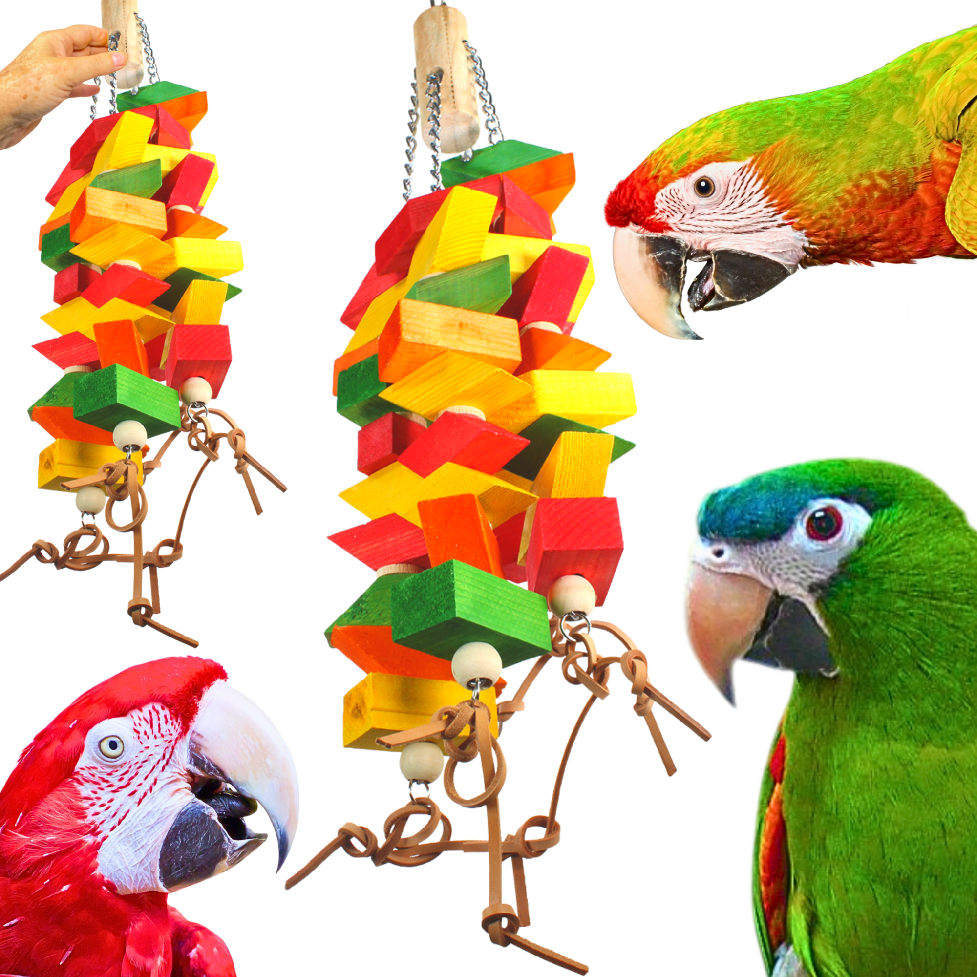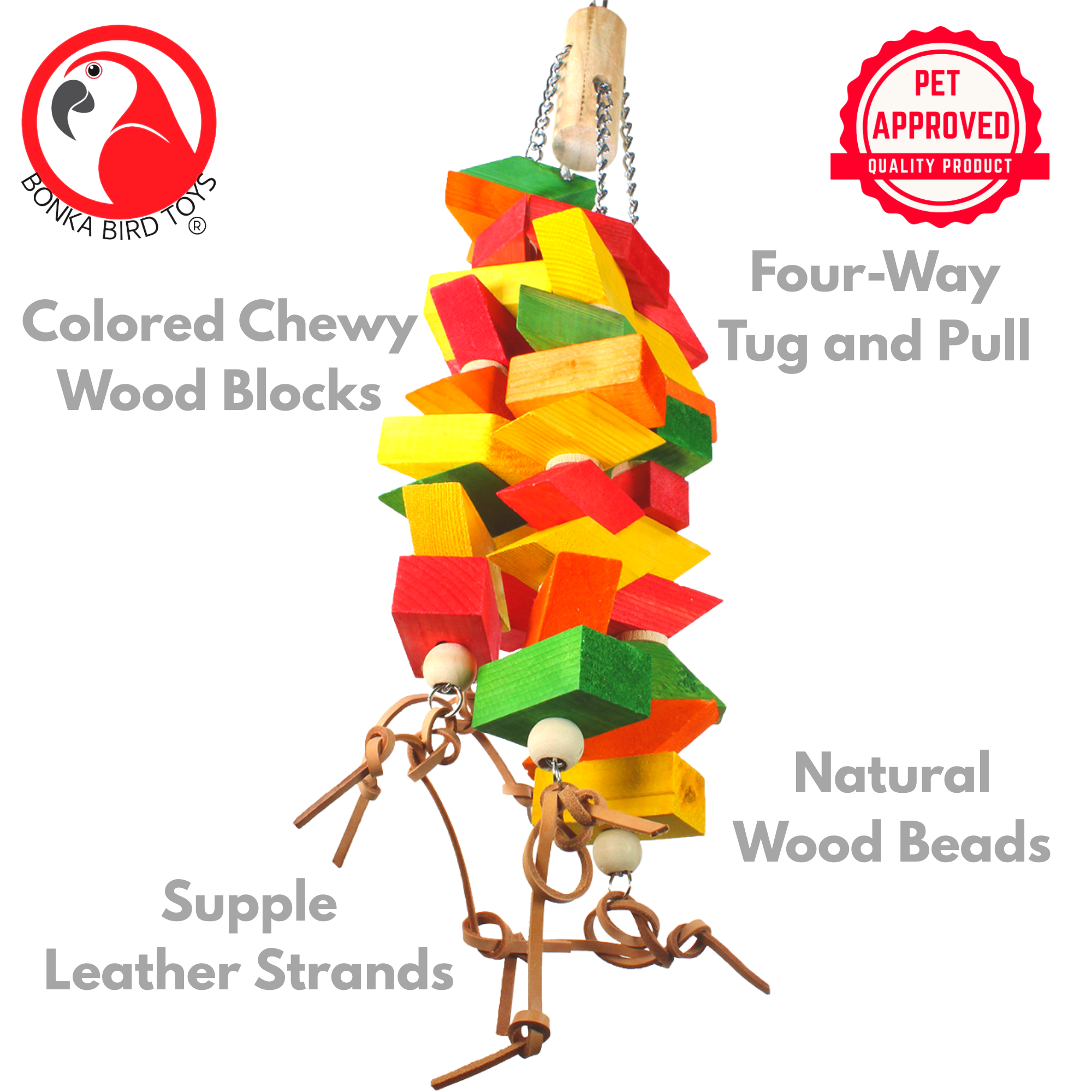Interactive Pull Chains: Dual heavy-duty link chains run through the toy, creating a tug-and-play action your bird will adore.