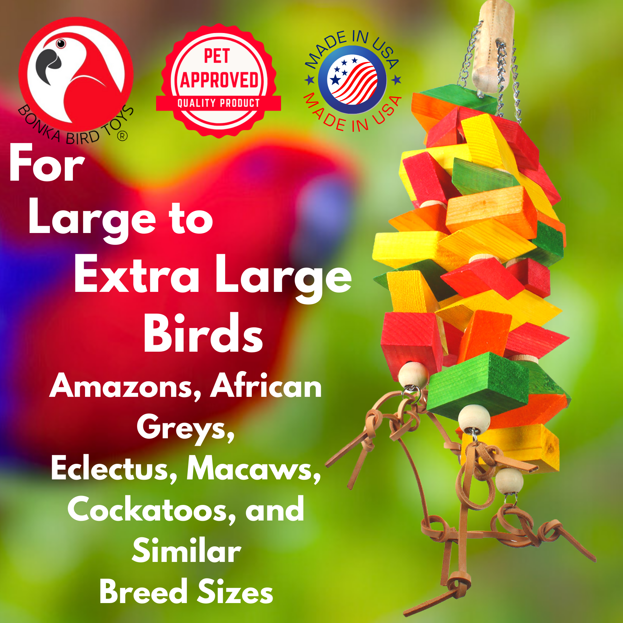 Massive Chewing Surface: Loaded with thick, bird-safe, colorful wooden blocks that satisfy the natural urge to chew.