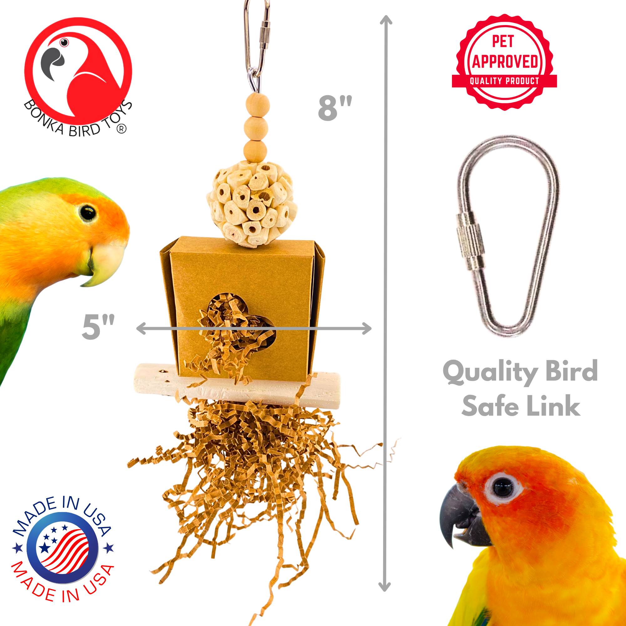 Perfect for Parakeets, Conures, Quakers, Caiques, Cockatiels, and other similarly sized birds, this toy is a must-have addition to your feathered companion’s daily play routine.