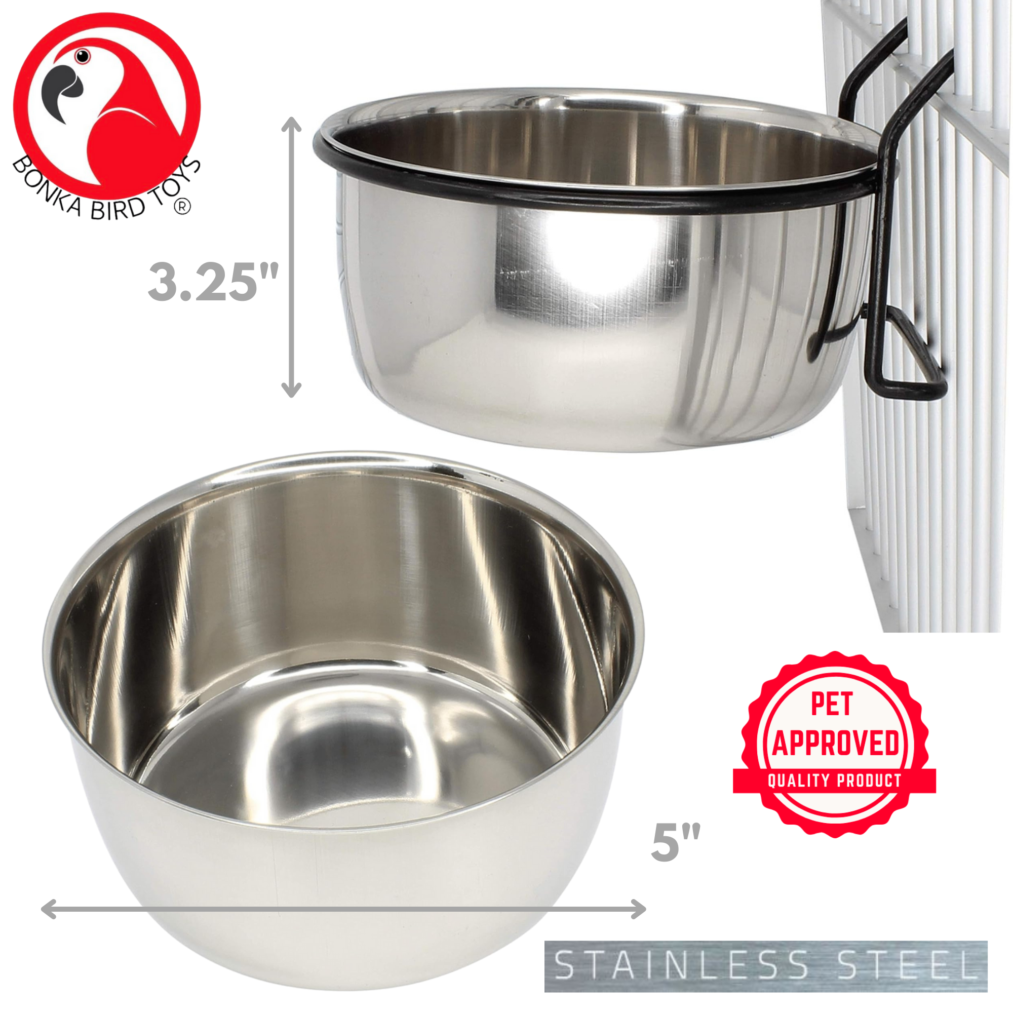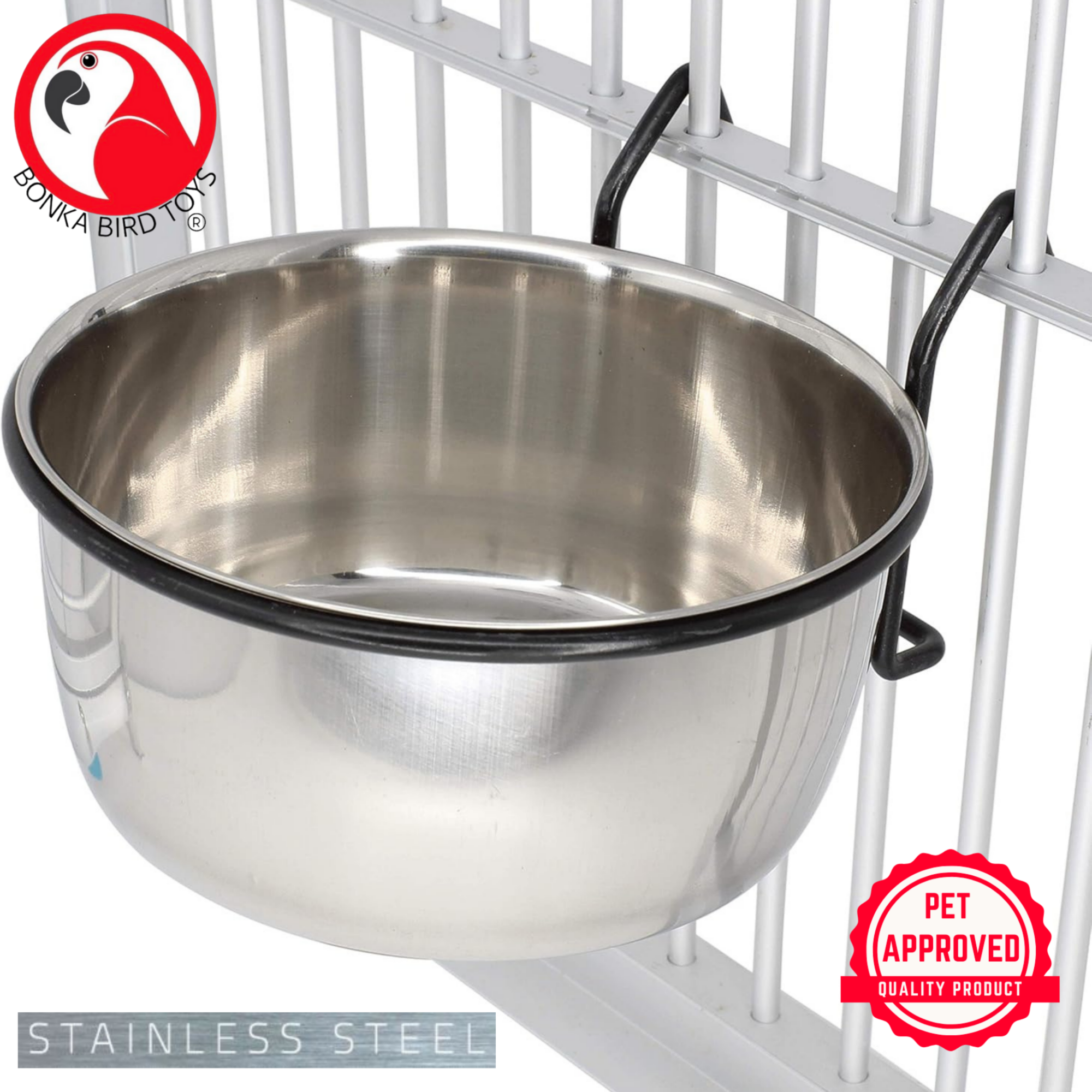 Upgrade your bird’s feeding setup with the Bonka Bird Toys 3497 20oz Stainless Steel Lux Hook Cup, a sleek and functional choice for bird lovers who value both quality and convenience. Designed with a polished stainless steel finish, this feeding cup is built to last and complements any birdcage with its elegant silver look and black powder-coated hook.