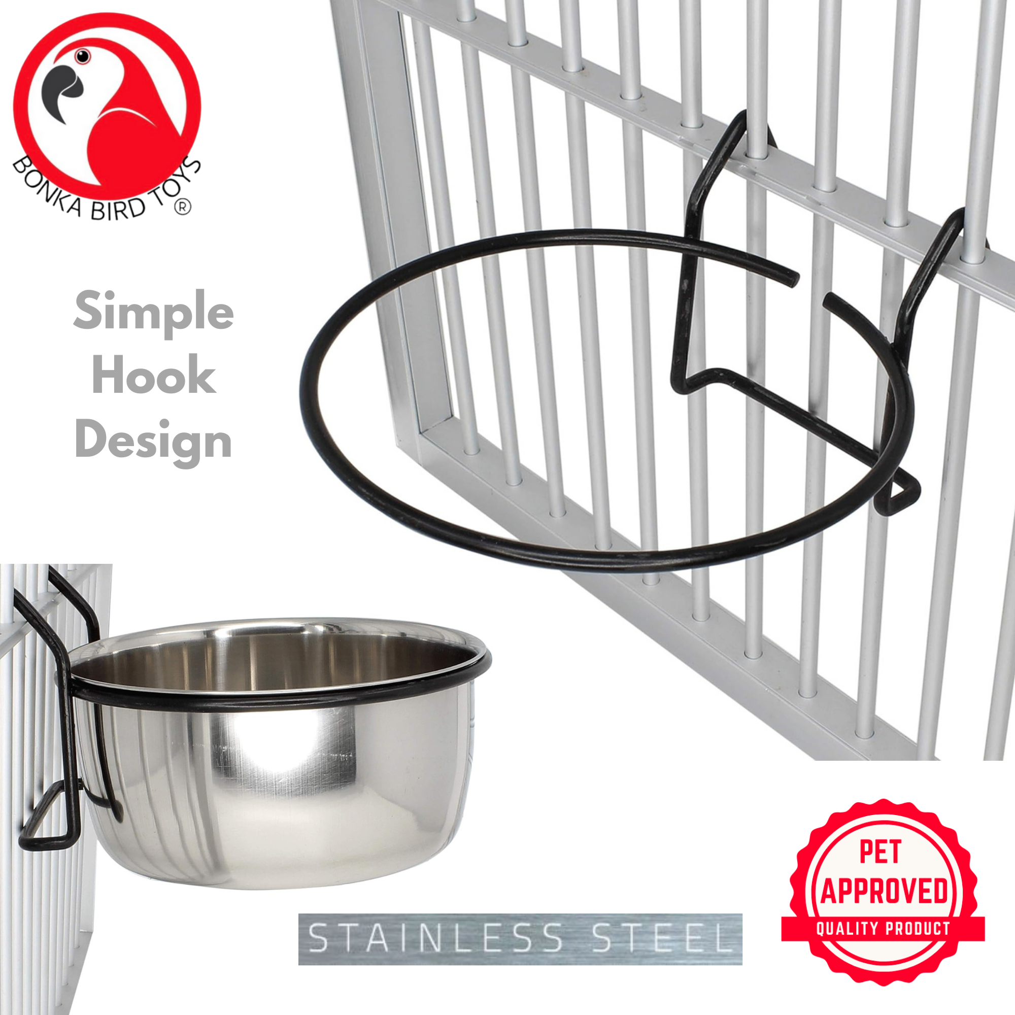 This hook cup is ideal for cage-mounted feeding and is built to handle the daily demands of your feathered companion’s mealtime routine.